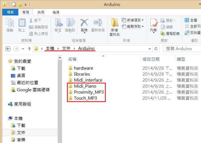 以下就是點點樂各作業系統素描簿(Sketchbook)的位置,請依照您的作業系統,將解壓縮的程式碼目錄放置上去(放置前請記得先關閉Arduino程式介面)。
